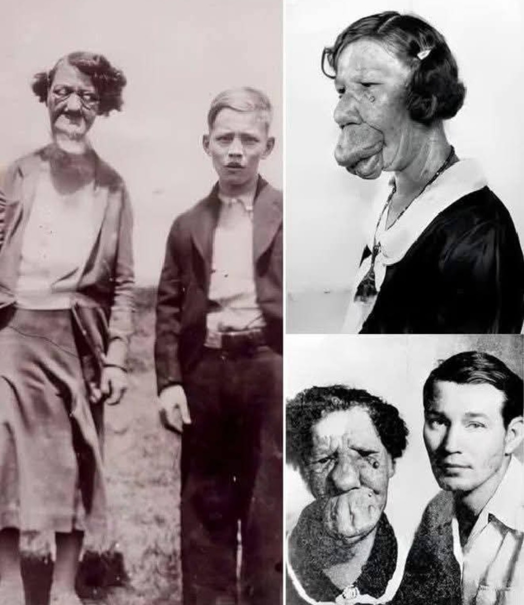 In the turbulent days of the 1930s and ‘40s, Grace McDaniels was tragically branded with the cruel nickname “Mule-Faced Woman,” a label she earned due to a severe facial deformity caused by Sturge-Weber syndrome. However, behind the harsh judgment of society stood a woman whose heart was full of love, strength, and quiet dignity. Despite enduring ridicule, Grace bravely faced the world, taking on sideshow performances to provide for her family during the hardships of the Great Depression. 💔🌻But beyond the external struggles, Grace’s world revolved around her son, Elmer, who never saw her through the eyes of mockery. To him, she was not defined by her appearance, but by the unconditional love and tenderness of being his “Mom.” Their relationship was one of deep connection and unwavering affection, a bond untouched by the cruelty of the outside world. Elmer’s love for his mother was all-encompassing, and together they formed a fortress of love that no amount of judgment could tear down. 💕👩👦