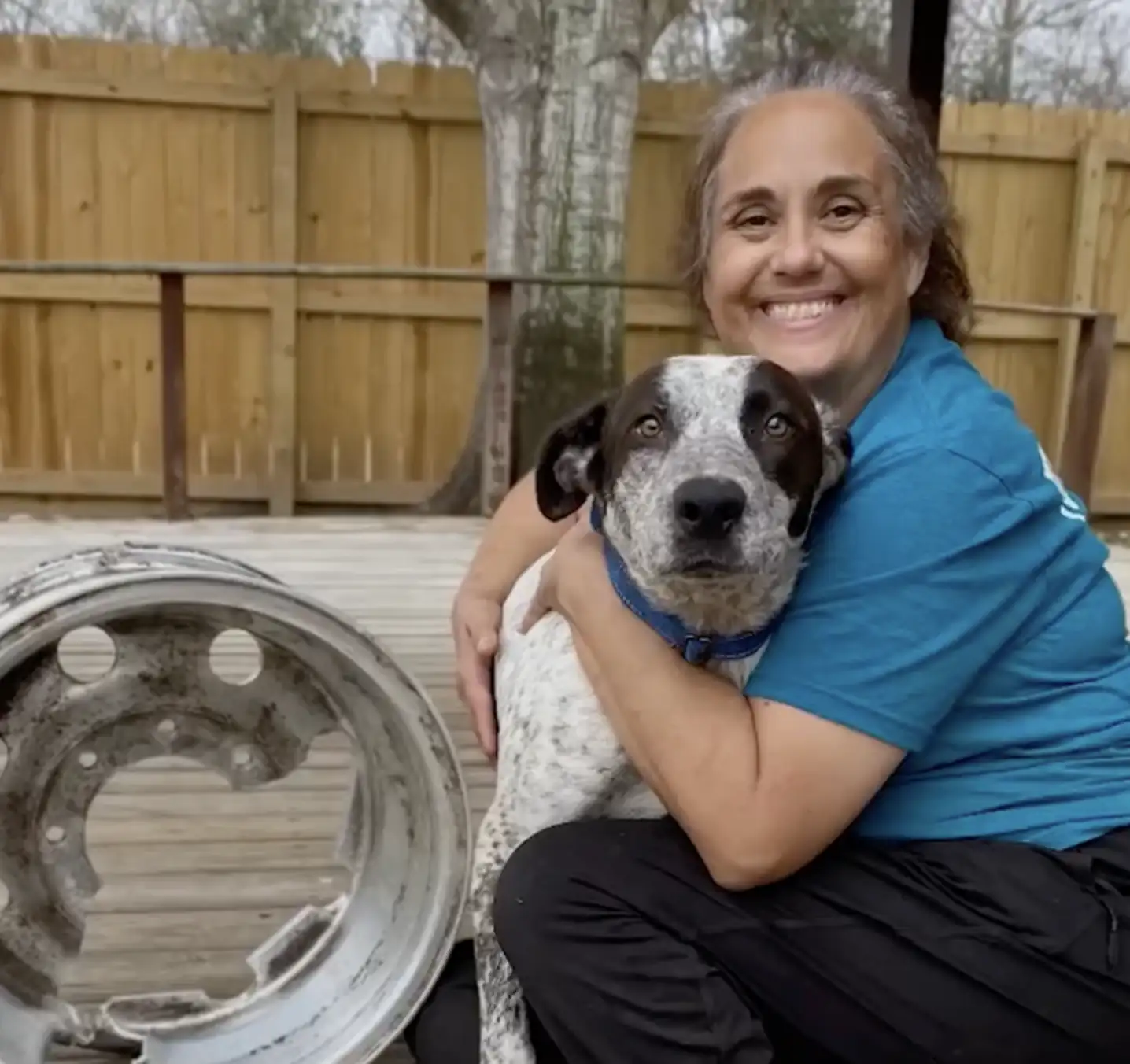 A few years ago, Three Little Pitties (TLP) Rescue Center in Texas received a call that made every volunteer’s heart stop. A stray dog had been discovered near a crowded rodeo, with a metal tire tightly wrapped around his neck, leaving him struggling and terrified. The dog’s situation was dire, and it was clear that without immediate help, his life could be in danger.
