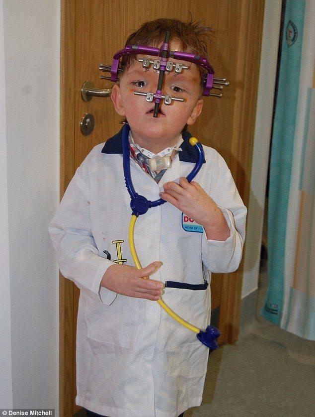 Born with Apert syndrome, little Billy Mitchell entered the world facing a difficult and uncertain future. Doctors initially feared that he wouldn’t survive his first night, as he was born with severe skull and facial deformities that left him vulnerable from the start. 😢 But Billy had different plans. From the very beginning, he showed incredible strength, proving to the world that he wasn’t ready to give up. 🙏As he grew, Billy faced more than 50 surgeries, each one a battle. One of the most intense surgeries involved cracking open his skull and implanting a titanium frame, which had to stay in place for nine weeks. 🏥🔩 Each operation carried tremendous risks, including the potential for brain damage or even death. Yet, despite the fear and pain, Billy never faltered. He endured it all, always fighting to hold onto hope and to his dreams of living like other children. 💪One of the greatest challenges he faced was with his fingers and toes, which were fused together because of his condition. After more surgery, his fingers and toes were separated, allowing him to finally hold things and play in ways many of us take for granted. 🌈