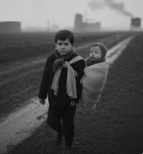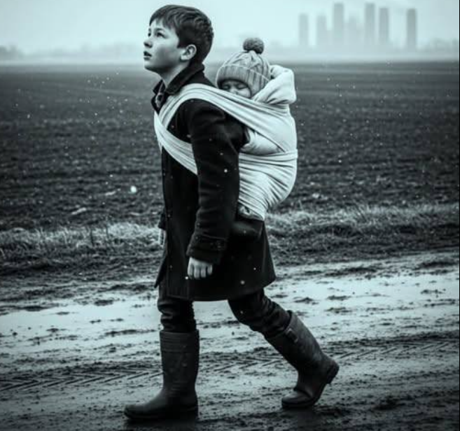 76 miles. On foot. Through unfamiliar terrain. The only thing that guided him was the soft, rhythmic sound of his baby sister’s breath against his neck. Every step was uncertain, every direction unclear, but he never faltered. He traded what little food he had—potatoes for milk, scraps for shelter. He knocked on doors, pleading for a place to rest, to be safe, but often he was turned away. Yet, he did not stop. His resolve was fueled by a love so pure and a promise to his sister that he would get her to safety.