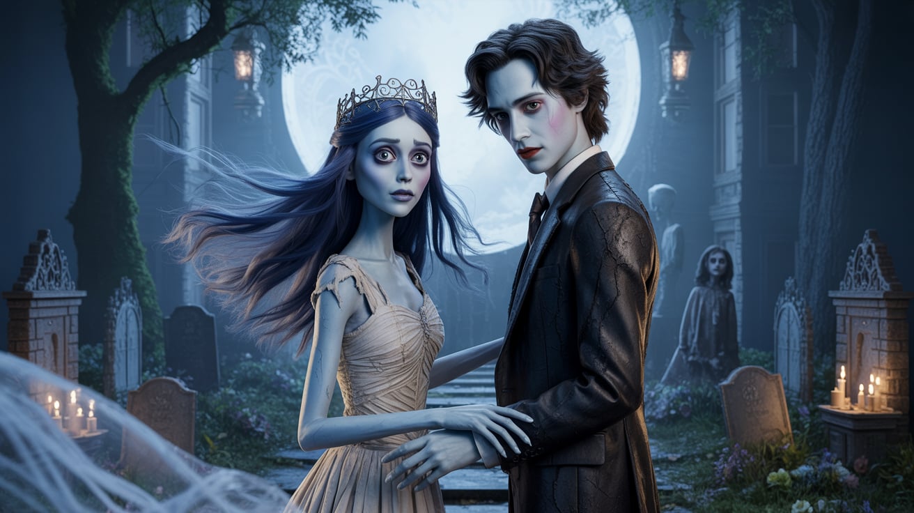 The visual world of Corpse Bride is a gothic marvel: moonlit cemeteries, misty forests, and crumbling Victorian estates create a hauntingly poetic backdrop. Shadows twist into symbolic shapes, while the faint glow of spectral light hints at hope, redemption, and the enduring power of love. The narrative interweaves elements of romance, suspense, and supernatural mystery, illustrating that death is not an end but a transformation — a chance to reconcile the past, embrace the present, and choose the future.