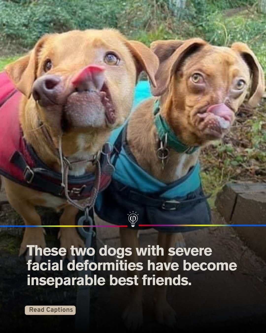 Picasso was born with a facial deformity, a condition that made him stand out in ways no puppy should ever have to. Newt, on the other hand, faced a different kind of hardship β he lost his upper jaw as a puppy, leaving him vulnerable and struggling. Yet, despite their painful pasts, both dogs were given a second chance at life, thanks to Lisel Wilhard, the founder of Lovable Dog Rescue. Lisel saw not their physical scars, but the potential for joy, love, and companionship. She gave them a home where they could heal, grow, and, most importantly, be loved. π‘β¨Now, Picasso and Newt are inseparable β the best of friends, living a life filled with playful walks, belly rubs, and cuddles. Their days are spent enjoying the simple pleasures of life, from meeting new people to basking in the warmth of their forever home. Together, they have become symbols of strength, showing the world that happiness and beauty arenβt defined by appearance. Their bond is a living testament to the idea that what truly matters is the love we share and the joy we bring to others. ππ