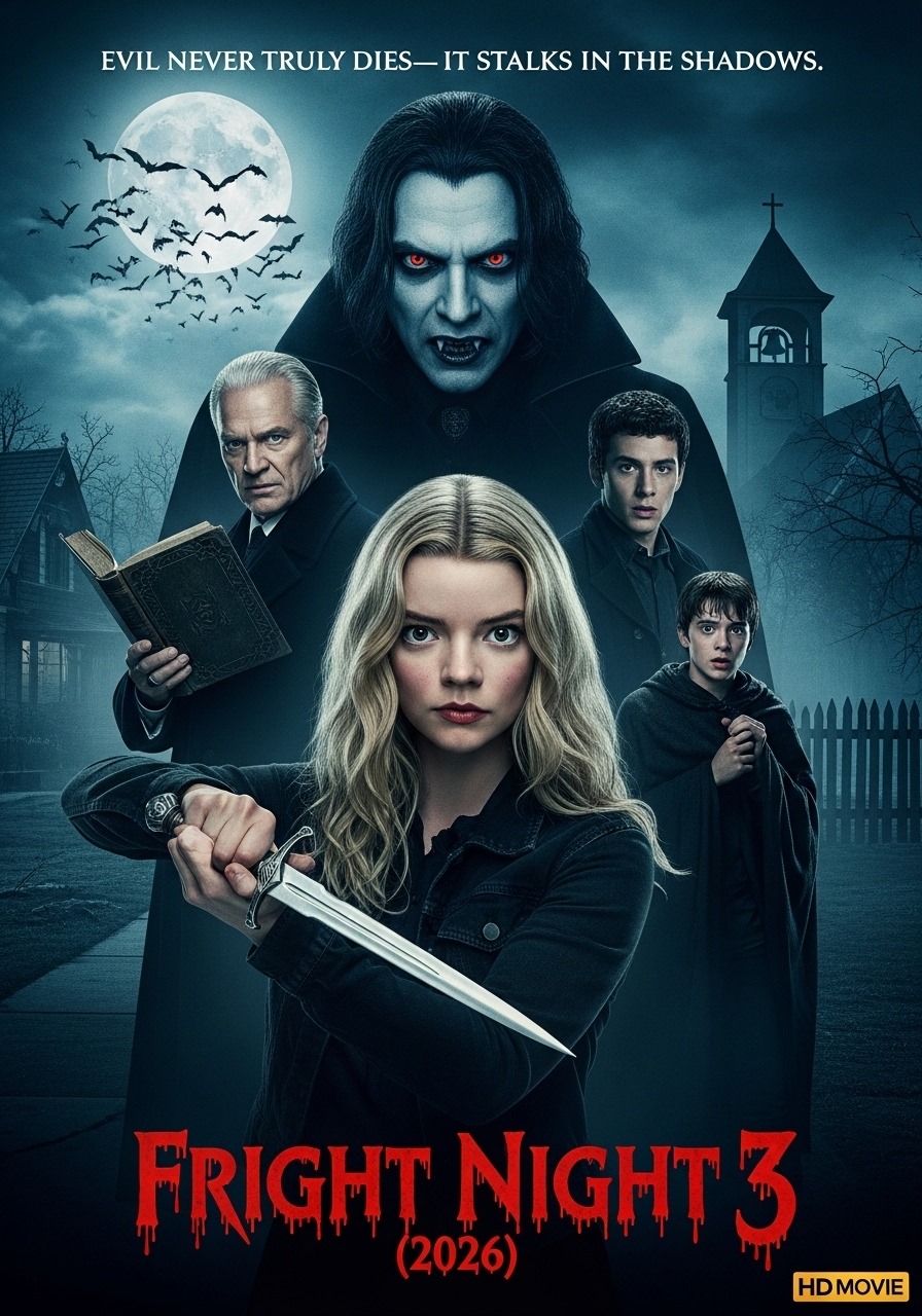 The night is darker than ever in Fright Night 3, the chilling continuation of the cult-classic vampire saga. Anya Taylor-Joy returns as Charli Winters, a fearless vampire hunter whose courage and wit have been tested beyond human limits. Years after the events of the previous films, Charli has settled into a fragile semblance of normal life—but the shadows of the night are never far behind.