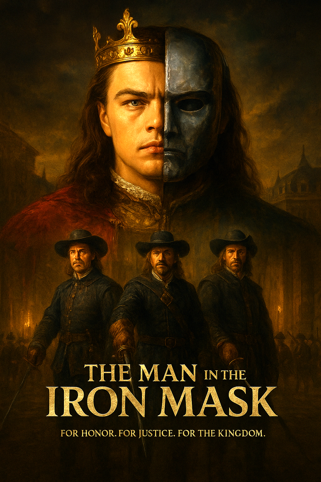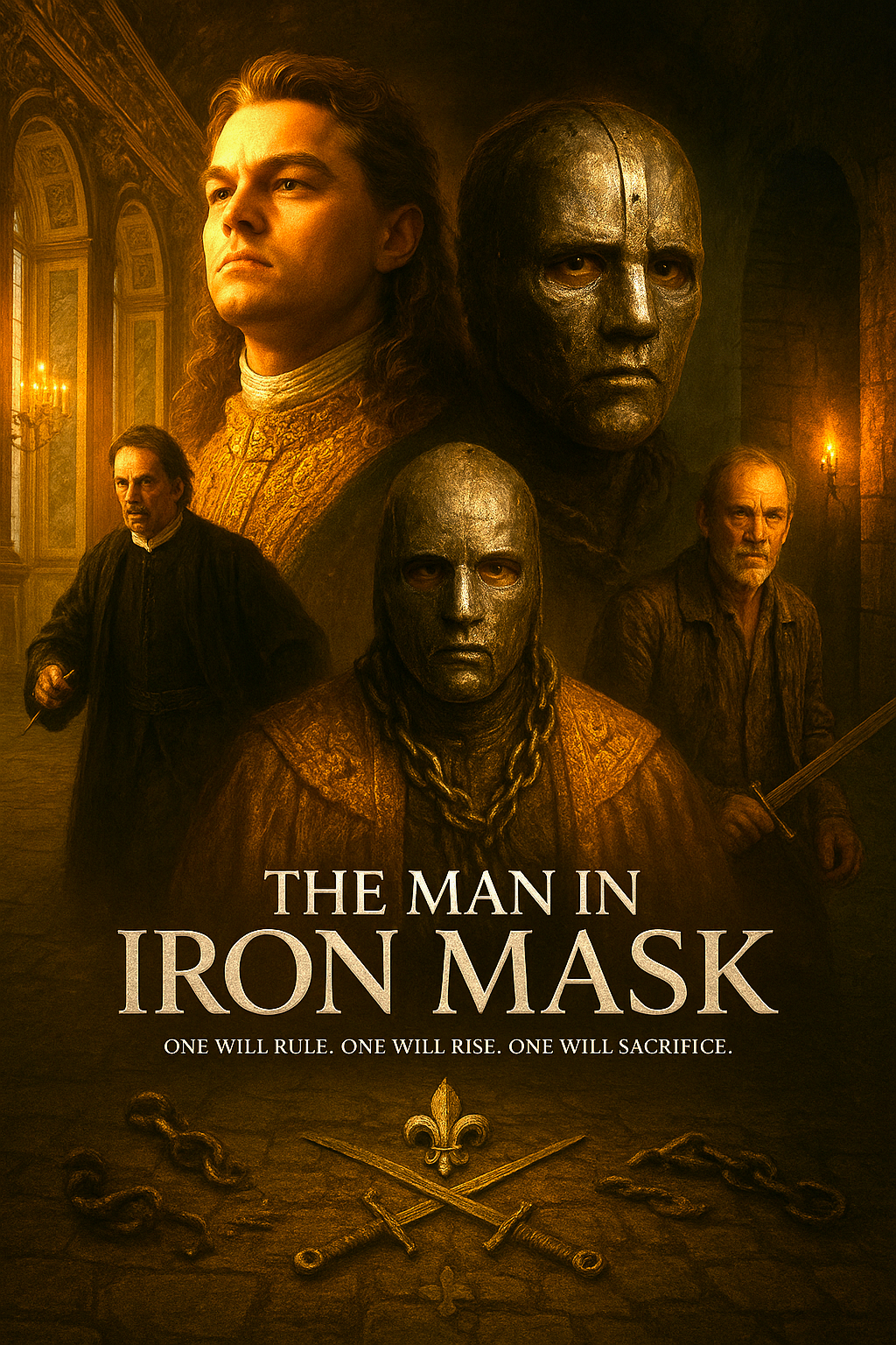 The Man in the Iron Mask is a lavish historical adventure inspired by Alexandre Dumas’ classic tale. Set in 17th-century France, the story follows King Louis XIV (Leonardo DiCaprio) — a young and selfish ruler — and his secret twin brother Philippe, imprisoned and forced to wear an iron mask to conceal his identity. When the aging Three Musketeers — Athos, Porthos, Aramis, and D’Artagnan — uncover the truth, they reunite for one final, daring mission to replace the corrupt king with his kind-hearted brother.
