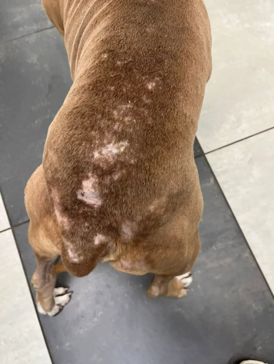 At the veterinary hospital, the diagnosis was grim: severe dehydration, skin infections, flea anemia, and malnutrition. The vet whispered that he might not make it through the week.