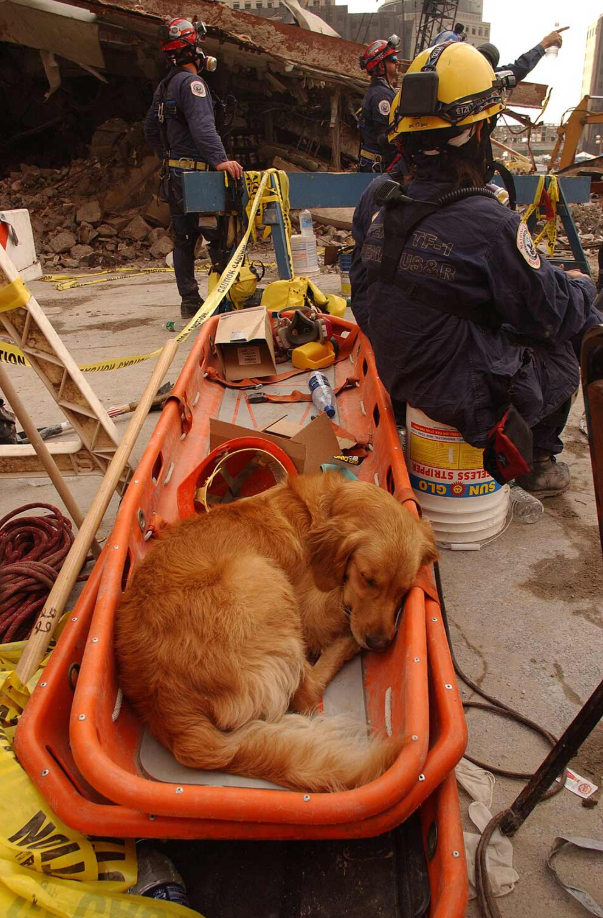 • Apollo, a New York rescue dog, arrived minutes after the South Tower fell and worked tirelessly for weeks.