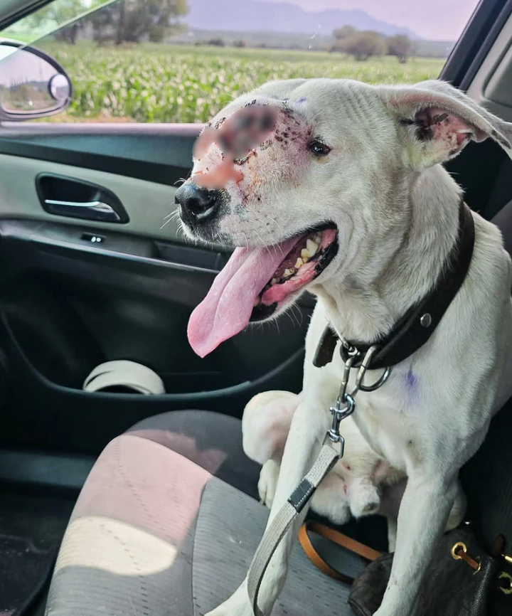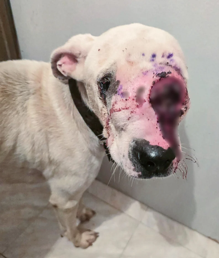 Tony was found on the side of the road, his neck caught in a broken chain, bleeding and covered in wounds. A large mass on his face caused him unbearable pain. His eyes, filled with fear, confusion, and silent desperation, seemed to cry out for help. He had spent his entire life neglected, never knowing the warmth of human love or care.