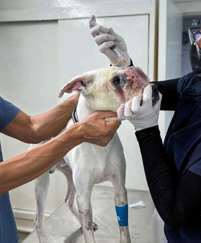 Tony was rushed to Riviera Rescue, where veterinarians performed urgent examinations. The results were heartbreaking: Tony was suffering from severe infections, anemia, and Transmissible Venereal Tumor (TVT)—a contagious cancer that spreads through contact between dogs. Without immediate treatment, his life could have ended before it truly began.